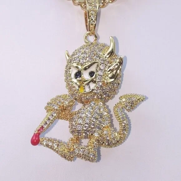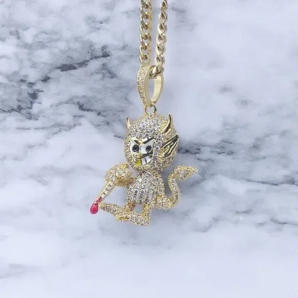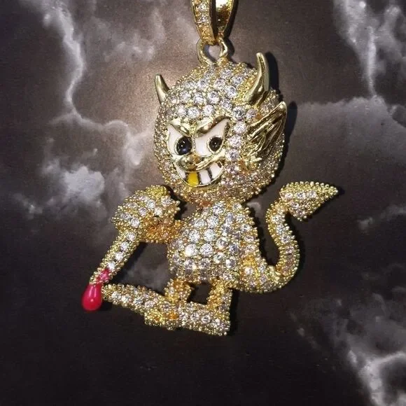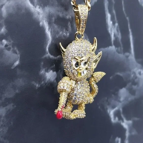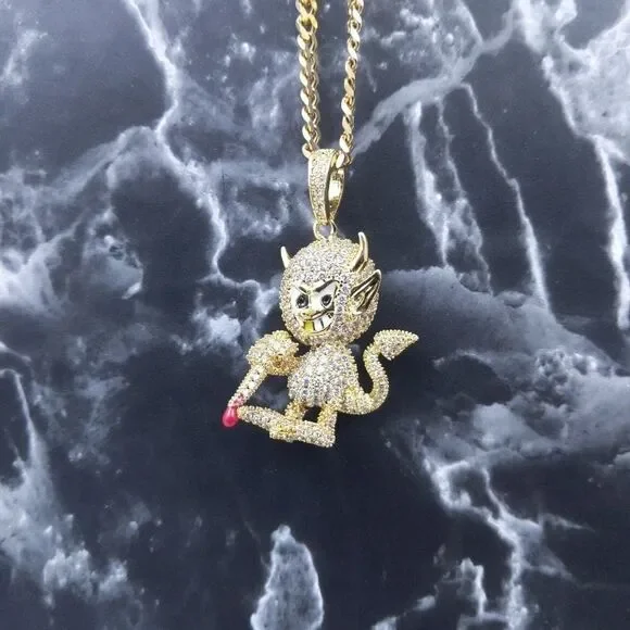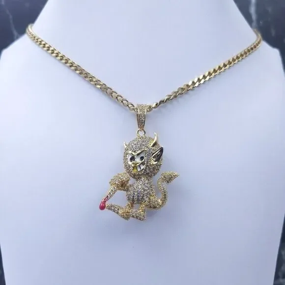 New High Quality Icy 14K Gold Finish Devil Shape Pendant + 14K Gold Finished 20" x 3mm Cuban Chain over Stainless Steel for Men & Woman.Pendant Design: Devil ShapePendant Metal: BrassPendant Plating: 14K Gold FinishPendant Size: 1.9" x 1.3"Chain Design: Cuban ChainChain Metal: Stainless SteelChain Plating: 14K Gold FinishChain Size: 20" x 3mmChain + Pendant Features: Anti-Fade-Allergy-RustReasonable Offer's Welcome