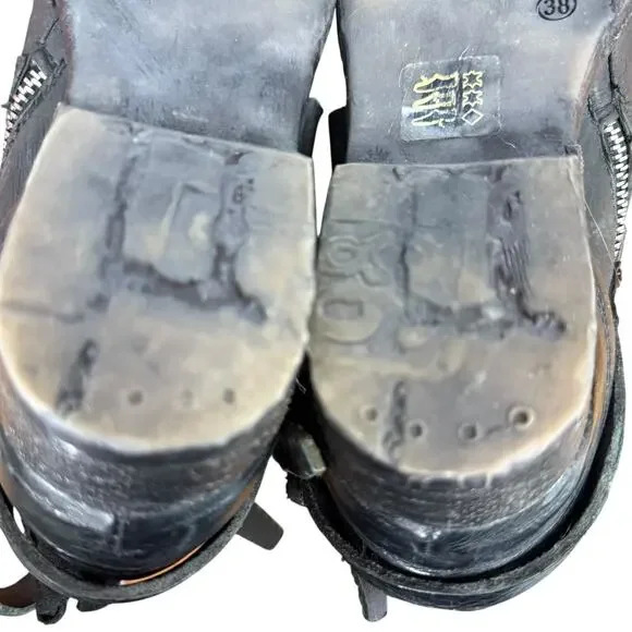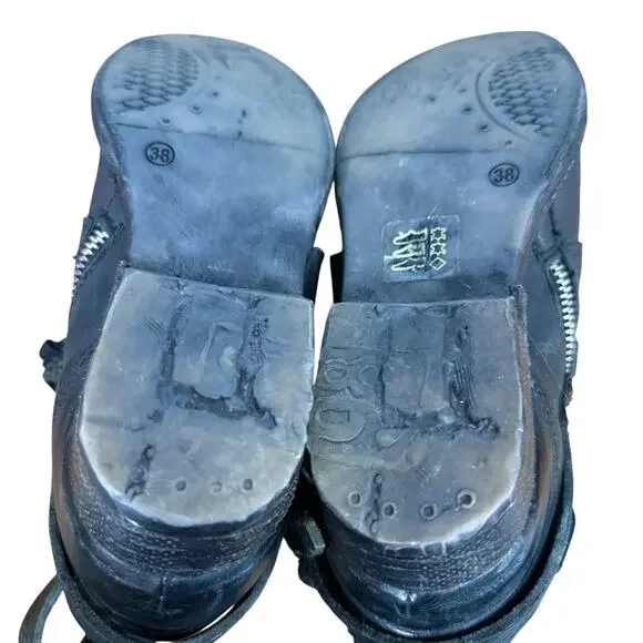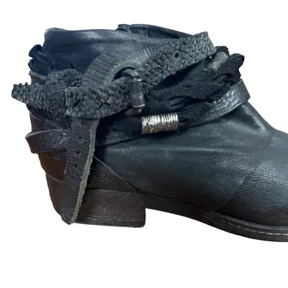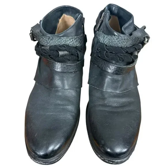 A.S. 98 Begonia Strappy Buckle Moto Black Leather Ankle Booties Boots 38 7.5/ 8