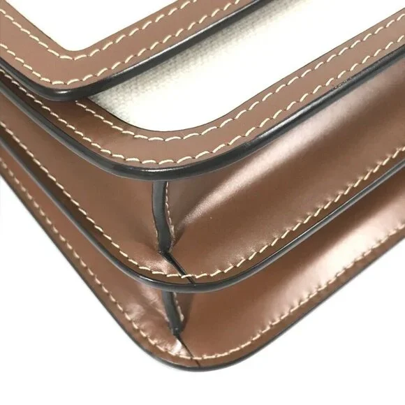 NAME:BURBERRY Bag 2WAY bag Clutch bag TB Crossbody Shoulder BagSHAPE:Shoulder BagMODEL NO.:8039365COLOR:BeigexBrownMATERIAL:Canvas/LeatherAPPROX SIZE:W8.3×H5.9×D3.3inch / W21cm×H15cm×D8.5cmShoulder longest: 60.2inch / 153cmShoulder Strap:detachable、AdjustableThe top is used to measure the width.Listed hand measurements may have a 1-2cm difference.GENDER:Women'sSPEC:[Inside] Zipper pocket x 1ADDITIONAL ITEMS:Shoulder strap ,ITEM RANK:Used S Rank (This item has been used a number of times and has a few minor defects but is still in pristine condition.)CONDITION DETAILS:Outside:Minor scratches,light stainsInside:Minor scratchesMetal fittings part:Minor scratches