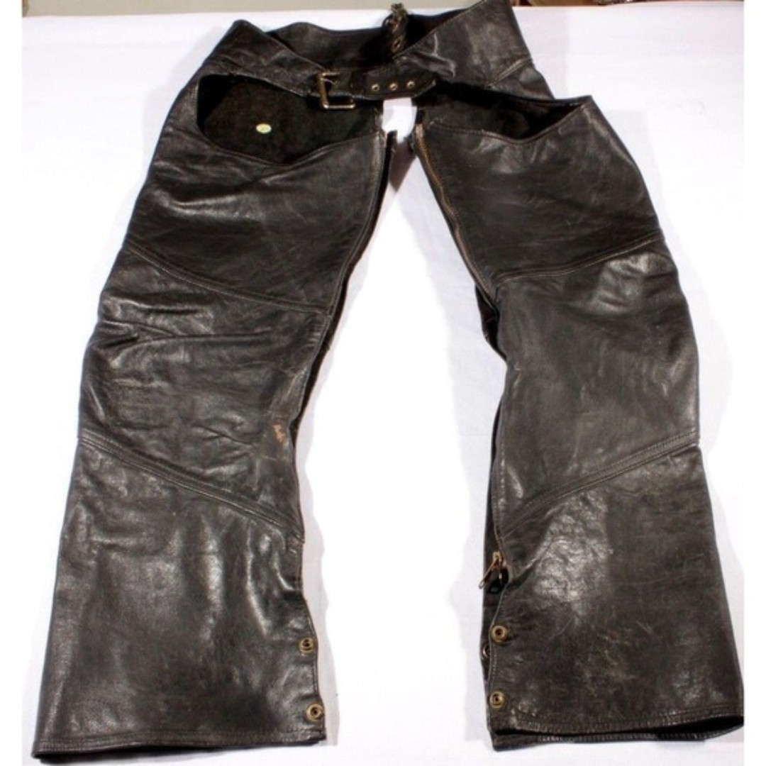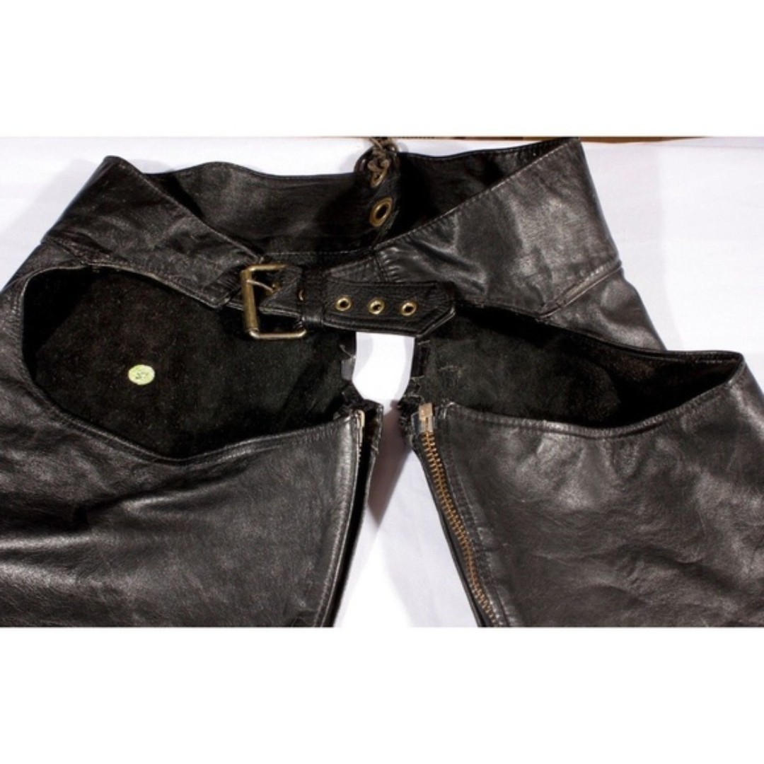 Dallas Premium Leather Motorcycle Chaps Size XL Black Riding Chaps Made USA. These are in good condition, they have been repaired, See Images. These can be used by either Men or Women.