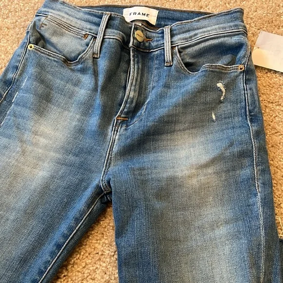 New with tags. Size 26The label's signature Le High Skinny jeans are back in their distressed Fanning Rips washed denim. Belt loops. Zip fly and button closure. Five pocket styling. Raw-edge hems.Fit information:High-riseSkinny silhouetteStretch denimStyle Number: LHSKRA230 FANNINGDetails:Fabric: 94% cotton, 4% polyester, 2% elastaneMachine washImportedModel is 5'10" and wearing size 26Rise: 10"Inseam: 28"Smoke free home