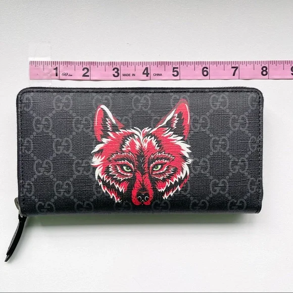 Condition: new with out box. No damage or flaws. Has never been used. Will be authenticated byand shipped with care.All around zip fastening, multiple interior card slots and interior compartments divided by a partition, it features an all over logo print and a fox graphic print to the exterior.Lining: Silk 100%Outer: Canvas 100%