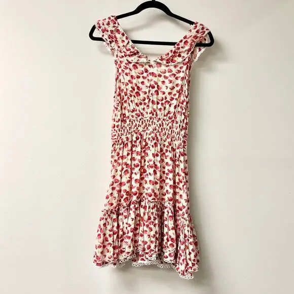 Poupette St Barth Bruna Floral Print Ruffle-Trim Mini Dress White Red Alamy SMSRP: $350Item condition: gently worn very good condition, no flawspit to pit 17''waist 12''length 35''Brand: Poupette St BarthSize: SColor: White Red Alam greenFloral patternMini lengthCochet trimRuffles at necklinePintuck waistUnlinedMini lengthLoose fit, elasticated waist100% viscoseHand washThe ruffle trims along the neckline and hem add playful, romantic detail, while the mini length creates a flirty and youthful silhouette.girly, feminine, modern, classy, classic, timeless, romantic, fall, party, streetwear, minimalist, elegant,club, chic, flirty, date night, night out, edgy, dinner date, y2k, modest, mature, mini dress, casual, modern, picnics, afternoon teas, cocktails with the girls, vacays. floral5 star. seller - 5.000+ items sold - Fast shipping - Closets of influencers and fashion collectors-Shop with confidence - Smoke-free clean storage environment -Bundle and Save! - New arrivals every week