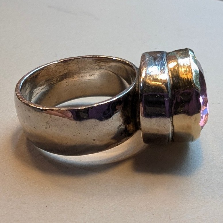 Size 6.5 Massive Pink Gemstone Sterling Silver & 14k Gold Handmade Israel Ring