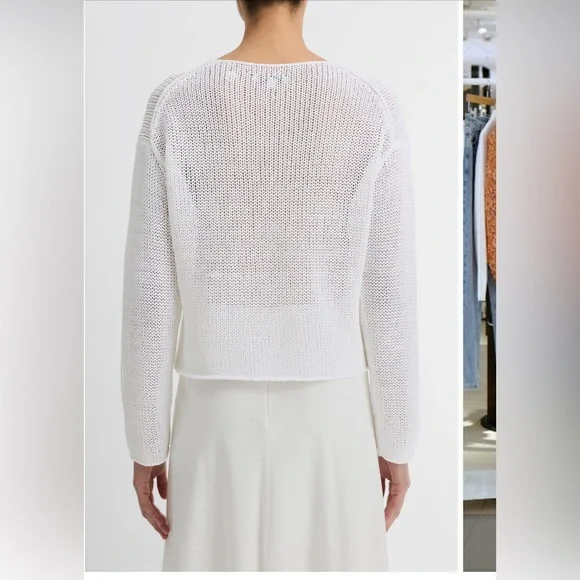 Vince Open Knit Boat Neck Sweater - XSAdd a touch of effortless sophistication to your wardrobe with this Vince Open Knit Boat Neck Sweater in a classic optic white. Featuring a breezy, semi-sheer open knit design, this sweater is perfect for layering over camisoles or bralettes for a chic, laid-back look. Made from a soft organic cotton blend, it offers both style and comfort.Size: XSCondition: New without tags.Color: Optic WhiteFabric: 75% Organic Cotton, 25% PolyamideRetail Price: $348Perfect for beachy evenings, weekend brunch, or a relaxed yet polished vibe. Bundle for a discount and save on shipping. Smoke