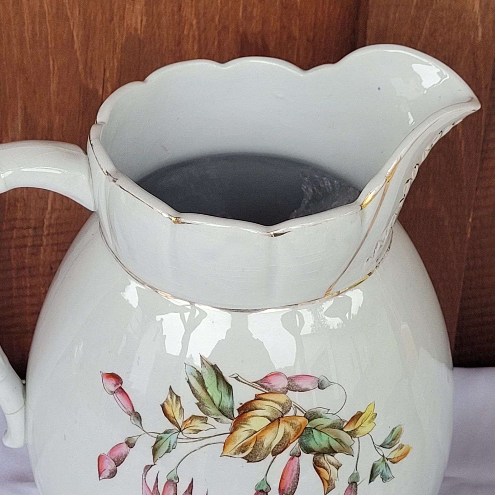 Antique California Ironstone Pottery Floral Pitchers and Vase Set. Designs on both sides.