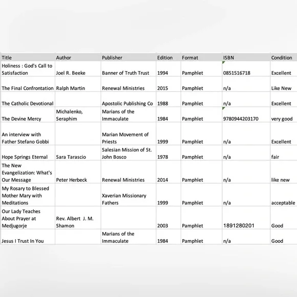 Vintage pamphlets: Christian / Catholic / Religious textsCollection of 10 pamphlets - some fairly rare. Eight are vintage with two being more recent. Condition ranges from “acceptable/fair” to “like new”. See chart pictured for additional details on publication dates and condition.10% off on bundles of 3 or more items! All items come from a smoke-free home. Ships within 1-2 business days. All packaging is recycled and/or recyclable!#books #reading #religious #prayer #god #jesus #angels #worship #church #reverend #ministries #minister #priest